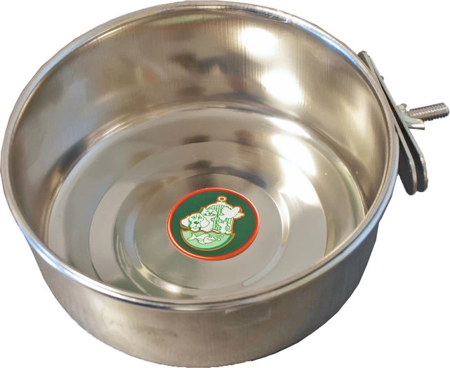 Rvs voerbak in een stevige ring met 1 vleugelmoer.