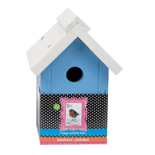 Nestkast voor alle mezensoorten o.a. koolmees en zwartkopmees. Deze nestkast is 23 cm hoog en kan prima bevestigd worden aan uw schutting of aan de gevel.