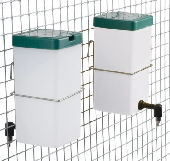Drinkbak met fles voor knaagdieren met RVS nippel. Omvat haken om in kooi te hangen. En is gemakkelijk te vullen aan de bovenkant.