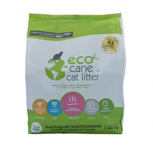 Eco Cane kattenbakvulling is gemaakt van resten van suikerriet en yucca. Er wordt geen chemicaliën of kleurstoffen aan de kattenbakvulling toegevoegd. Het is een klontvormende kattenbakvulling, door dagelijks de klompjes te verwijderen ( mag in gft bak) blijft de kattenbak schoon. Door de hoge absorbtie ruikt u niets van de urine en vocht wordt uit de ontlasting getrokken.