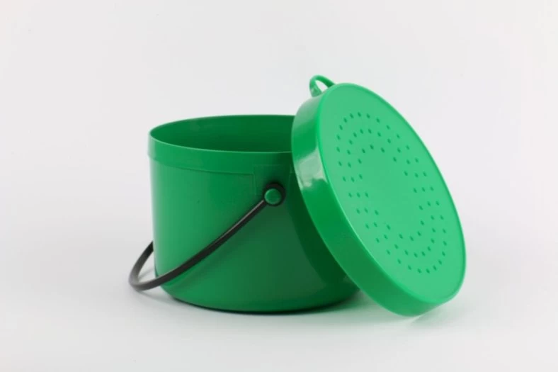 Kunststof emmer om pieren en maden in te bewaren. In de deksel zit alle maal luchtgaten.