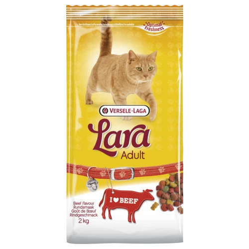 Kattenvoer voor volwassen katten die een actief leven leiden, dit kattenvoer is speciaal ontwikkelt voor katten die binnen en buiten leven. Lara kattenvoer bevat hoog gehalte aan vlees en is laag in prijs.